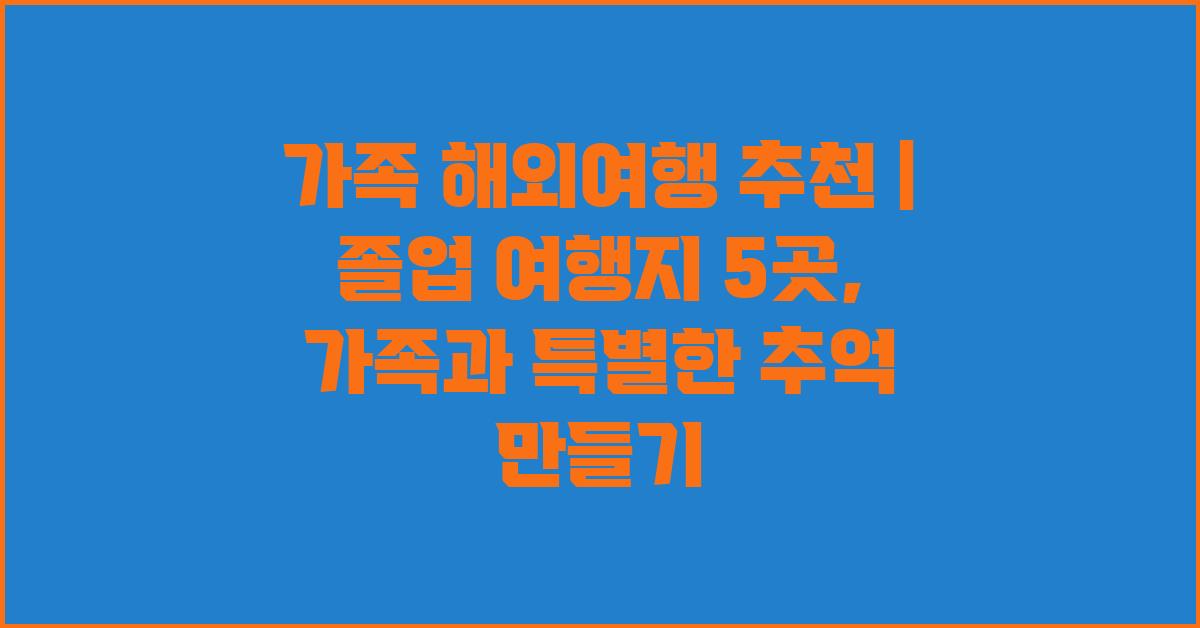 가족과 함께하는 해외여행은 평생 기억에 남을 특별한 순간을 만들어 줍니다. 졸업이라는 소중한 기념일을 기념하기 위한 여행지를 찾고 계신다면, 가족 해외여행 추천 | 가족과 함께 떠나기 좋은 졸업 여행지 5곳 추천 이라는 주제를 변별력 있게 풀어볼 필요가 있습니다. 이번 글에서는 가족 간의 소통과 유대를 강화할 수 있는 다양한 여행지를 소개하겠습니다. 여러분도 함께 어떤 곳이 좋을지 세심하게 생각해 보세요!