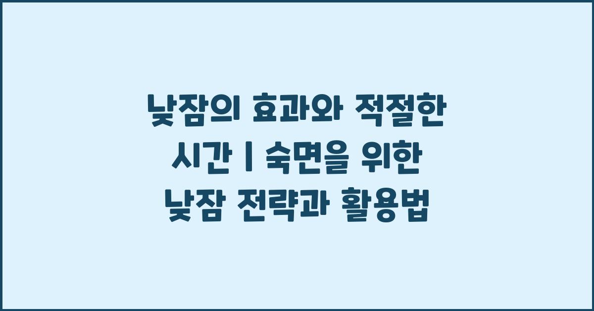 낮잠의 효과와 적절한 시간 | 숙면을 위한 낮잠 전략에 대한 논의는 오늘날 점점 더 중요해지고 있습니다. 지친 일상 속에서 짧은 낮잠 한 번이 우리에게 얼마나 큰 변화를 가져올 수 있는지, 혹시 여러분도 궁금하지 않으신가요? 저도 한번은 깜짝 놀랐습니다. 무기력한 오후, 이불 속에서 조용히 눈을 감았는데, 그 20분이 마치 몇 시간을 잔 듯한 느낌을 주었습니다. 더 맑은 사고와 안정된 기분으로 일어났던 기억이 새록새록합니다.