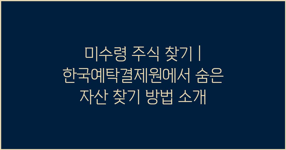 한국예탁결제원(KSD)은 주식, 채권, 투자신탁 등 다양한 금융상품의 예탁과 결제 업무를 담당하는 기관입니다. 주식 투자자 여러분에게 매우 중요한 역할을 하며, 자산 관리 및 주식 기록을 투명하게 유지하는 데 기여하죠. 이러한 예탁결제원은 미수령 주식 찾기 | 한국예탁결제원 확인 방법을 통해 여러분이 쉽게 잊고 지낸 자산을 되찾을 수 있도록 도와줍니다.