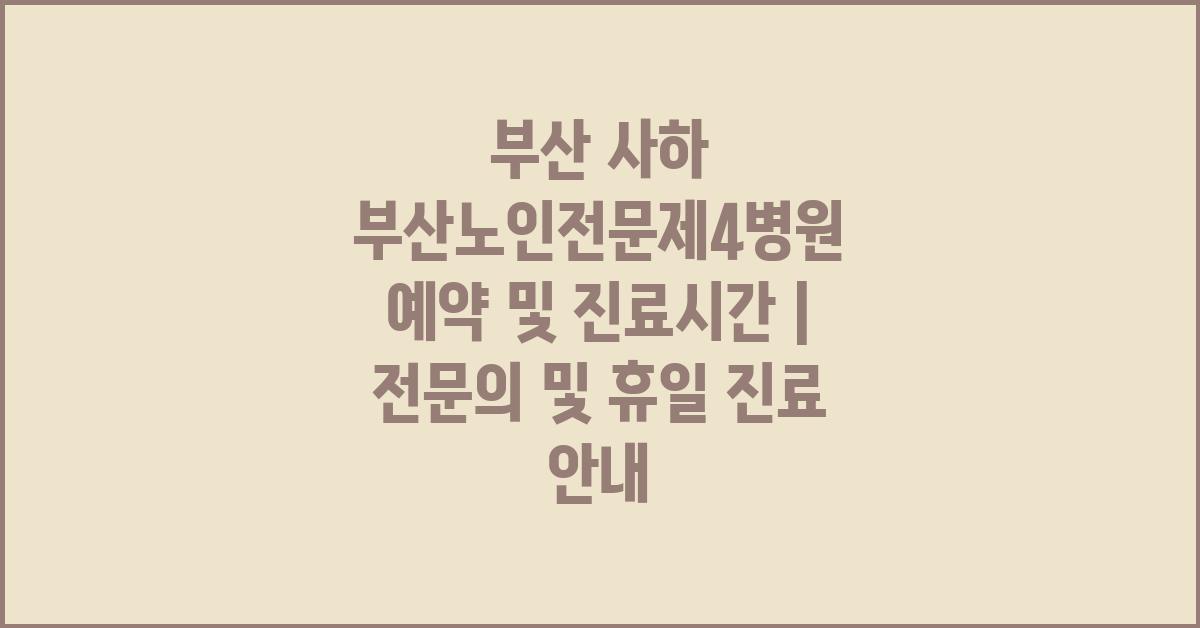 📅 부산 사하 부산노인전문제4병원 예약 방법