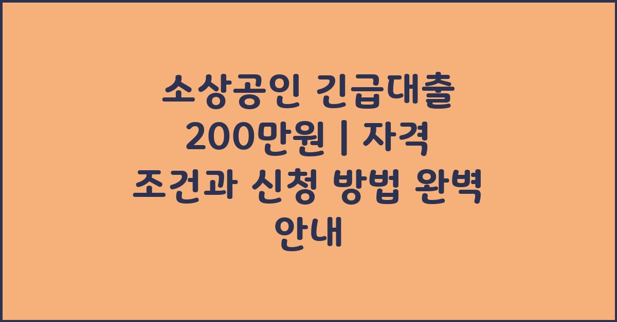 📊 소상공인 긴급대출 200만원의 혜택 및 유의사항