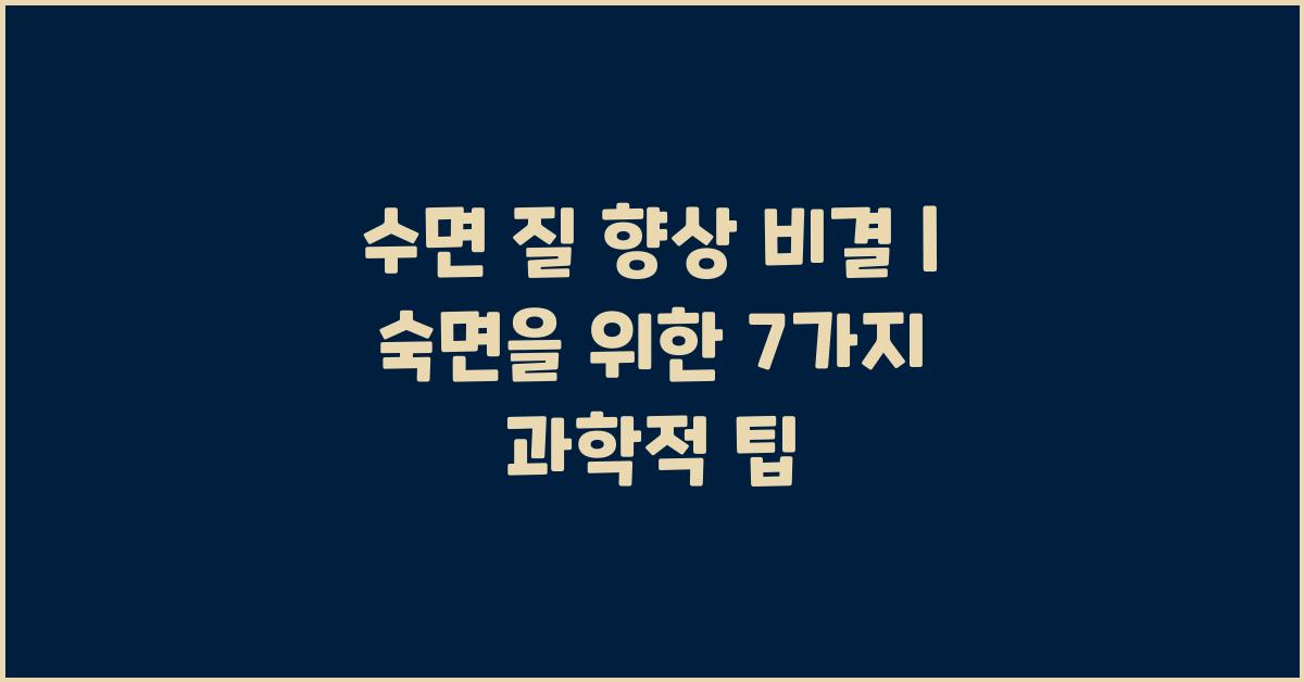 이제 본격적으로 수면 질 향상 비결 | 숙면을 위한 과학적인 7가지 방법에 대해 알아보겠습니다. 각 방법은 과학적 근거가 뒷받침되어 있으며, 간단하게 실천할 수 있습니다. 자 그럼, 첫 번째 팁부터 살펴보겠습니다!