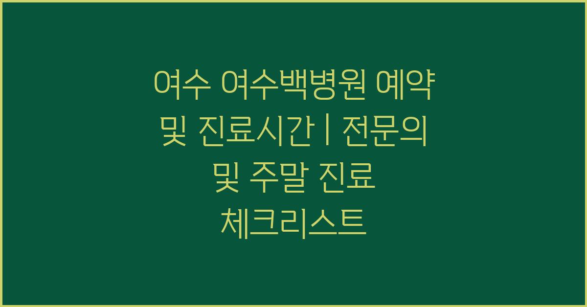 Q1: 여수 여수백병원 진료시간은 어떻게 되나요?