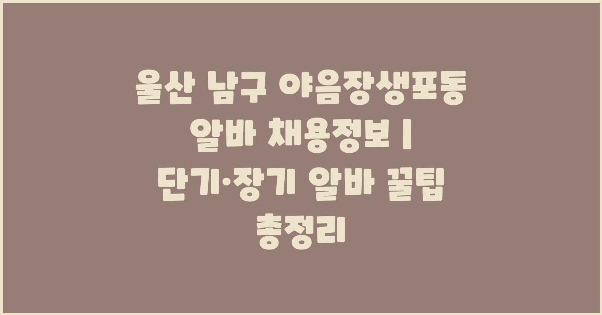 마지막으로, '울산 남구 야음장생포동 알바 채용정보'를 포함한 다양한 정보를 항상 체크하시길 바랍니다. 그리고 아르바이트를 통해 좋은 인연도 맺고 소중한 경험도 쌓아 가세요. 여러분의 여정이 더 풍부해지기를 진심으로 응원합니다!