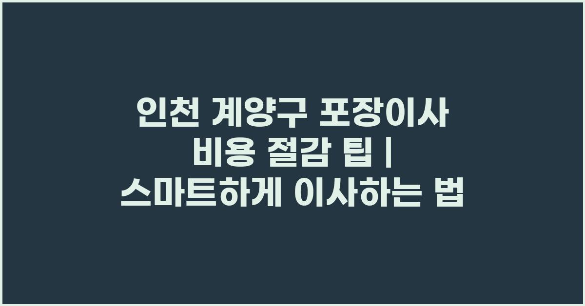 📦 인천 계양구 포장이사 비용 절감의 중요성