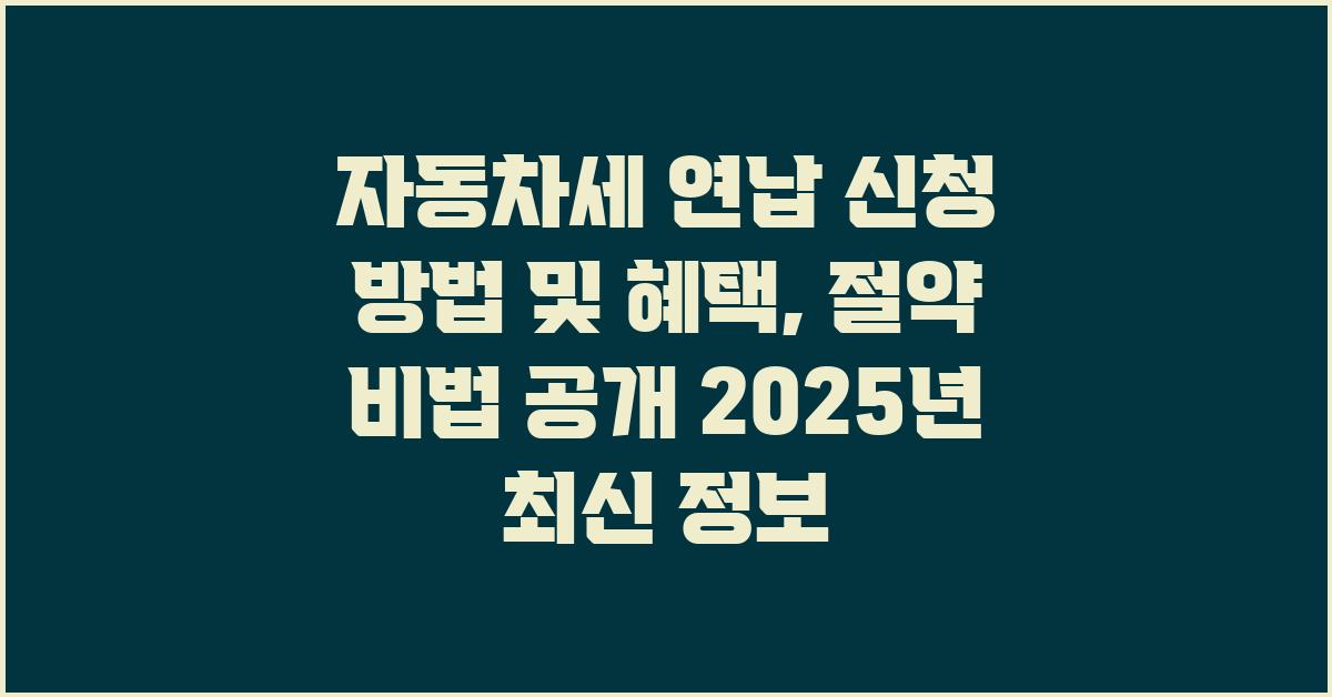 자동차를 소유하고 있는 많은 사람들에게 자동차세는 필수적인 경비 중 하나입니다. 2025년을 맞아 자동차세 연납 신청 방법은 더욱 간편하고 혜택은 다양해지고 있습니다. 특히, 연납 신청을 통해 세금을 미리 납부함으로써 여러 가지 혜택을 누릴 수 있습니다. 이 글에서는 자동차세 연납 신청 방법 및 혜택을 자세히 알아보겠습니다.