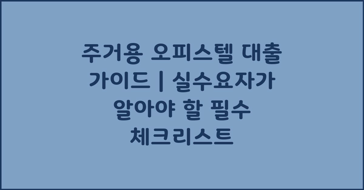 📌 주거용 오피스텔 대출: 무엇인지 이해하자