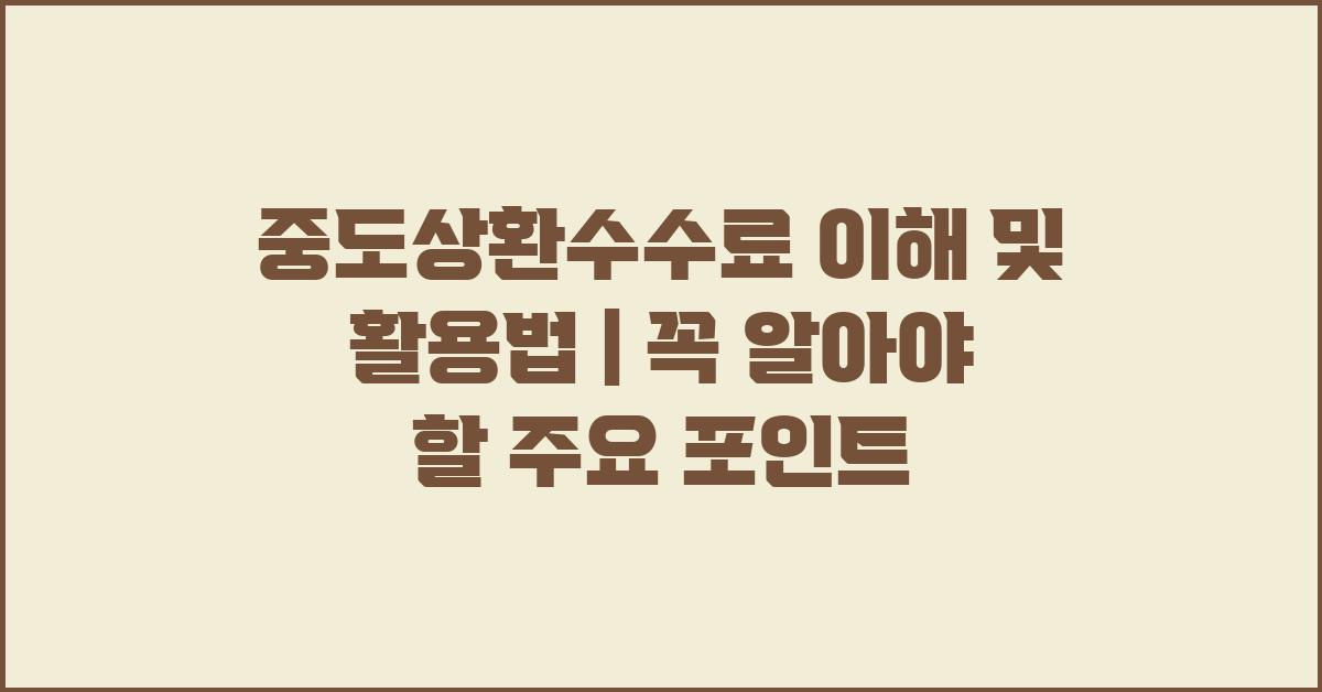 중도상환수수료는 대출을 조기에 상환할 때 발생하는 수수료를 의미합니다. 대출금을 예정보다 일찍 갚는 경우, 금융기관은 이자로 인한 수익을 고려하여 일정한 수수료를 부과합니다. 물론 이 수수료는 대출 상품에 따라 다르게 설정되며, 대출 계약 시 약관을 잘 살펴보는 것이 중요합니다. 여러분도 차입을 고려하고 있다면 이 점을 염두에 두셔야 합니다.