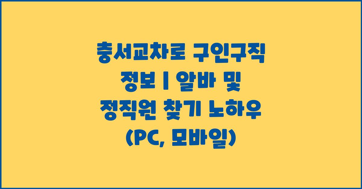 충서교차로는 구인구직 정보를 제공하는 중요한 플랫폼으로, 많은 사람들이 이곳을 통해 적합한 일자리를 찾고 있습니다. 직장인의 꿈을 이루는 첫걸음은 적절한 정보 수집에서 시작되죠. 여러분이 알바 또는 정직원을 찾고 있다면, 충서교차로 구인구직 정보 | 신문 정보 확인 (PC, 모바일)에서 필요한 모든 상담을 진행해 볼 수 있습니다. 정보의 바다 속에서 유용한 내용을 건져내는 것, 그것은 참으로 중요한 시작입니다.
