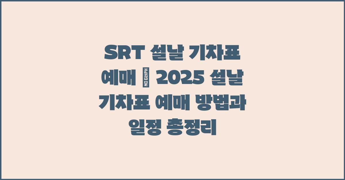 2025년 설날이 점점 다가오고 있습니다! 가족들과 함께하는 귀성길은 언제나 설렘과 기대를 안겨주죠. 그러기 위해서는 기차표를 미리 예매하는 것이 필수입니다. SRT 설날 기차표 예매 | 설날 SRT 기차표 예매 방법 및 일정 안내를 통해 미리 준비해보세요!
